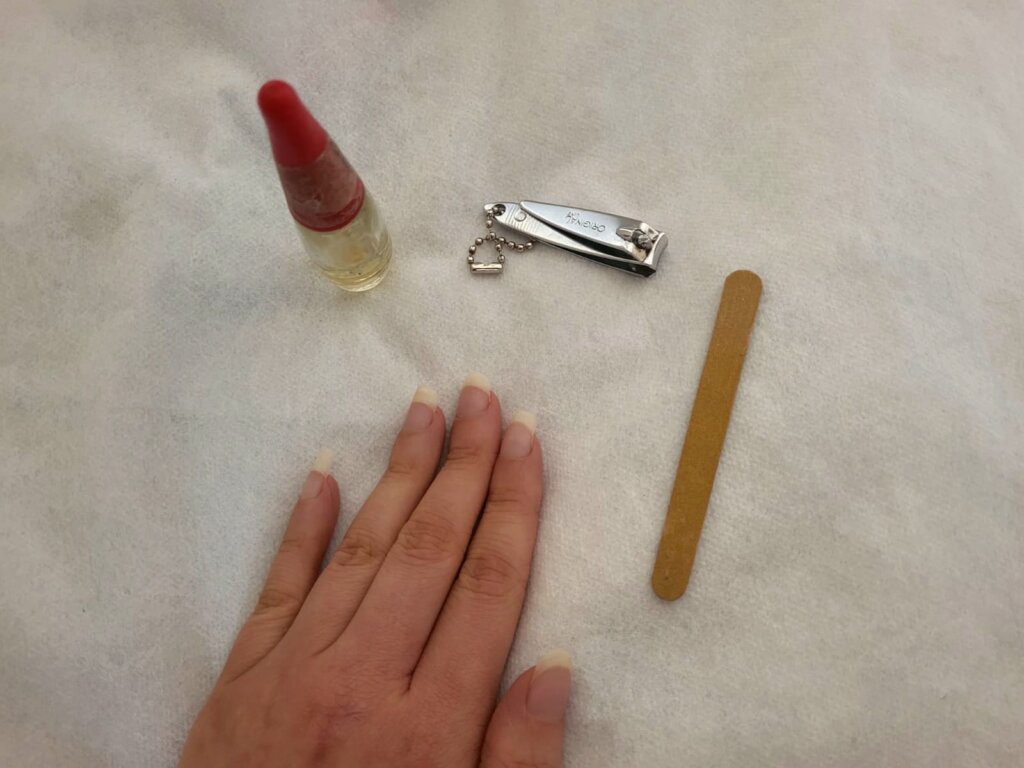This is my holy trinity of nail care: Nail clippers, base coat, and a nail file!